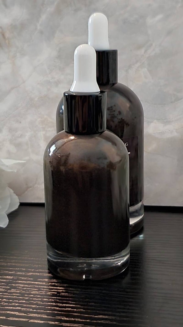 This bold, smoky blend features the rich warmth of Bay Rum, Sweet Tobacco, Cedar, and Patchouli essential oils, creating a scent that is both rugged and reverent. Blended with nourishing Jojoba Oil and enhanced with ethically sourced vegan mica powder in the deep, magnetic shade of Tall Dark and Handsome, this oil carries the weight of promise and the heat of holy passion.