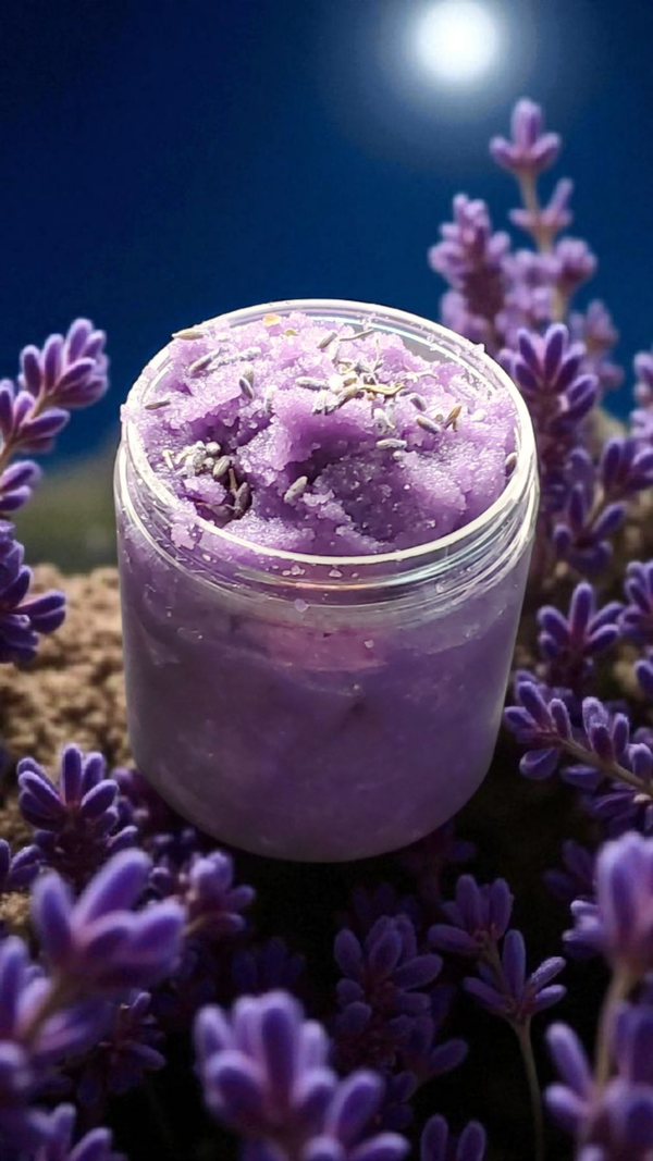 Packaged in a sleek 4 oz jar, our Sugar Scrub – Lavender Serenity brings peace, polish, and a little magic to your skincare routine.