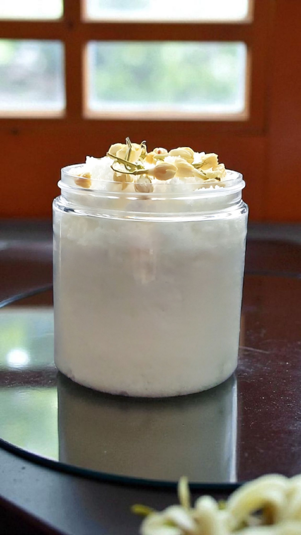 Step into a world of floral elegance with The Fragrant Fragrant Offering Sugar Scrub – Jasmine Glow, a luxurious exfoliating experience that leaves your skin smooth, soft, and lightly perfumed with the romantic scent of jasmine.