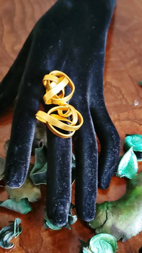 My original chaos ring, but make it with flat wire! This design is created using an 8 gauge, flay wire and woven into a chatix creation of spins and twists.